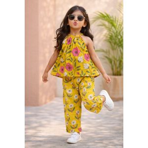 4. Pretty and Cute Heavy Floral Printed Halter neck style Summer Cord sets