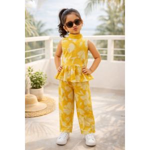 Girls Cotton Printed Peplum Kurta with sharara set-2-3Y-pink