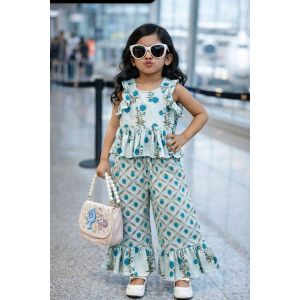 8. Pretty and Cute Floral Printed Ruffle Sleeve style Top with frill bottom pants