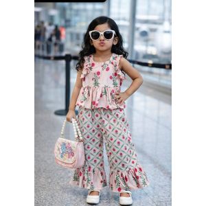 7. Pretty and Cute Floral Printed Ruffle Sleeve style Top with frill bottom pants*