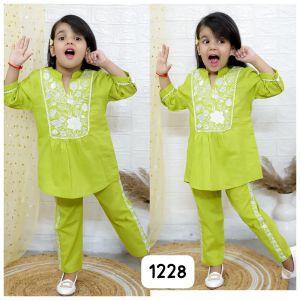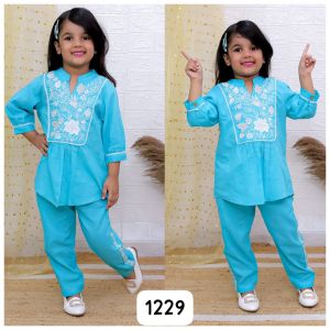9. Girls slub cotton Embroidered cord set
