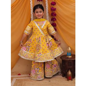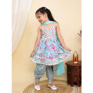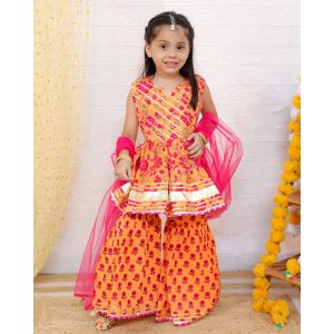 7. Girls floral Printed Kurta sharara with duppata