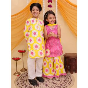 5. Girls kurta-sharara set and boys kurta pajama jacket sets